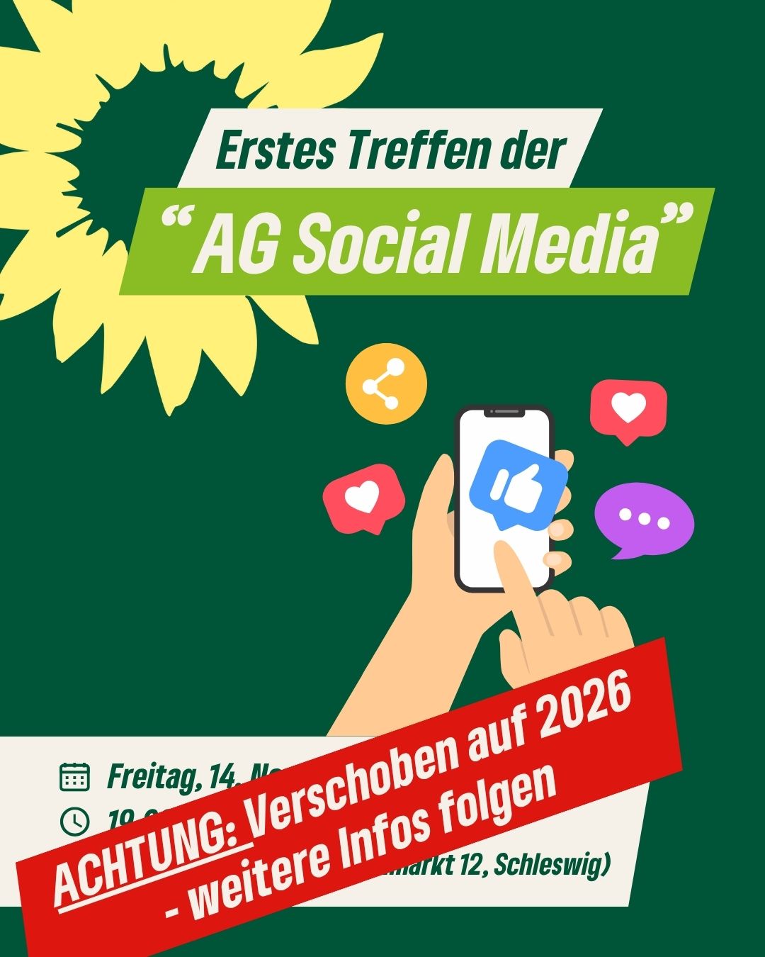 Deshalb laden wir Dich herzlich ein, zum ersten Treffen unserer „AG Social Media“ in diesem Jahr am Freitag, den 14. November 2025 um 19:00 Uhr in unserer Kreisgeschäftsstelle am Kornmarkt 12 in Schleswig.